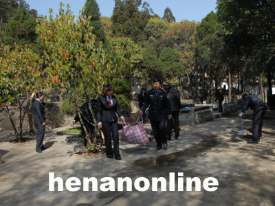 仪式完毕后,志愿者们拿起清扫工具纷纷走向烈士墓地,大家挥舞扫帚、拿起簸箕,扛起袋子,争先恐后地打扫落在烈士墓地上的落叶和泥土。经过1个多小时的战斗,志愿者们将烈士陵园中的所有墓地和道路统统清扫了一遍。