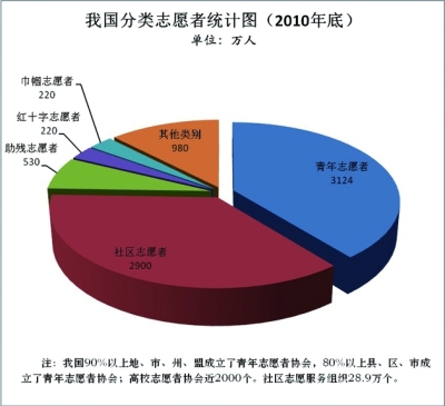 ●2010年上海世博会 8万名园区志愿者、10多万名城市服务站点志愿者、近200万名城市文明志愿者,为世博盛会提供优质服务。