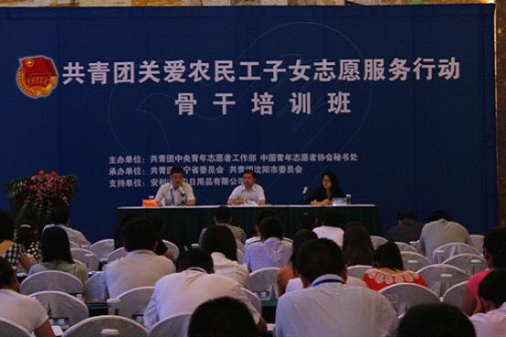 中国青年志愿者网7月22日讯(赵辉 黄易) 共青团关爱农民工子女志愿服务行动骨干(第二期)培训班今日在沈阳闭幕。此次闭幕仪式由辽宁省青年志愿服务指导中心主任高冰主持,团中央青年志愿者工作部项目规划处处长黄英锋出席了闭幕仪式。来自河南、河北、山西、辽宁、吉林、黑龙江、安徽、江西、湖北、湖南等10个省市部分高校的志愿者工作相关负责人参加了培训班闭幕仪式。