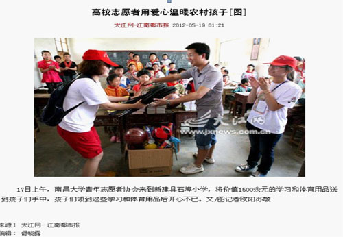 主题为志愿有我,关爱智障儿童,本次活动受到江西晨报一整篇幅的报道,在社会上引起广泛的影响。