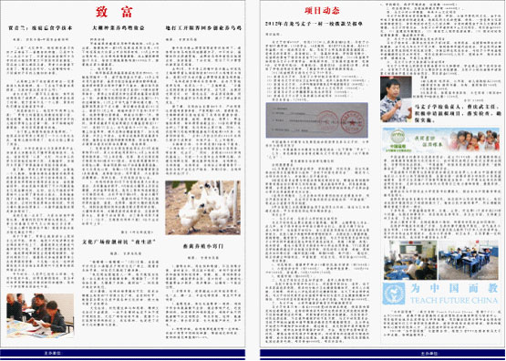 我们也希望我们的农村“校报-村报”行动能在,全国的支教点和支教组织里进行推广,但是我们需要作出前期的成果去证明它的真正意义。目前我们已经在马丈子开始进行家长学校试点实验,校报是关键,目前已经发行一期,辐射498户村民家庭。(该首期报纸已经被中国校报网排行榜选上http://www.zgxbw.net.cn/)