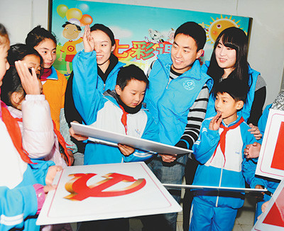 在今年“12.5”第27个国际志愿者日到来之际,广大青年志愿者像往常一样,在全国城乡广泛开展丰富多彩的关爱农民工子女志愿服务活动。12月3日,在北京大兴区行知学校,来自全市16个区县的青年志愿者项目专员代表进行集体上岗承诺。刚刚荣获第九届中国青年志愿者优秀奖的6名全国优秀志愿者代表,与北京印刷学院的20多名青年志愿者一道,在中国电子长城电脑公司为行知学校捐建的“七彩小屋”里开展“七彩课堂”志愿服务活动,对孩子们“心愿墙”上的“心愿”逐一给予答复,有的还当场承诺兑现。