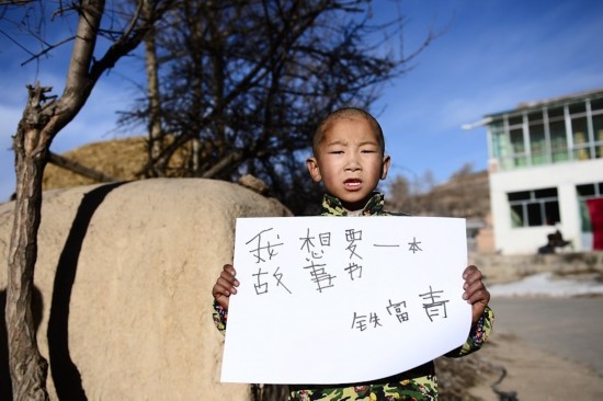 铁富青,10岁,青海省大通回族土族自治县朔北藏族乡代同庄村完全小学三年级学生(2012年12月31日摄)。他和弟弟铁贵青一直由外公外婆照顾,而爸爸妈妈一年有10个月在外打工。铁富青把爸妈的照片放在书包里,“我想他们的时候,就可以看一下照片”。新华社记者张宏祥摄