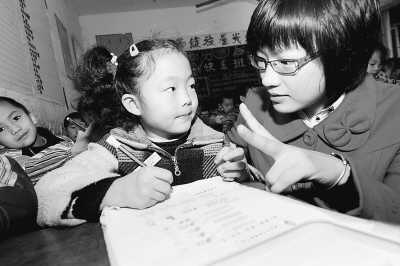 郎坤在辅导孩子功课。 本报记者 李维娜摄