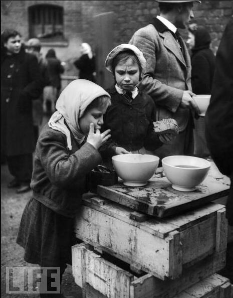 1945年4月,苏联难民营的一个儿童正在吃饭。在二战的东线战场,许许多多的儿童成了孤儿,或者与家人失散。
