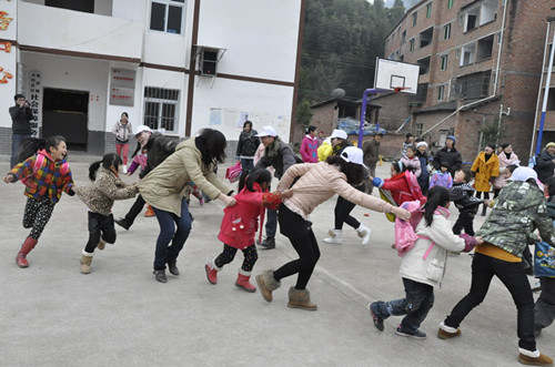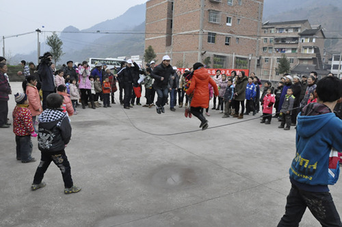 当日,团县委、县检察院的青年志愿者和农民工子女一起,分别开展了“老鹰捉小鸡“、跳绳、打篮球等游戏活动,努力让孩子们感受社会对他们的关怀。游戏结束后,志愿者们分别向30余名留守儿童赠送了书包、文具盒、电子琴等学习用具,乒乓球、羽毛球等体育用品,以及棉鞋、衣服等生活用品。活动中,县检察院和团县委相关负责人分别表达了对农民工子女新年的祝福,希望广大留守儿童好好学习,努力成为国家的栋梁之才。