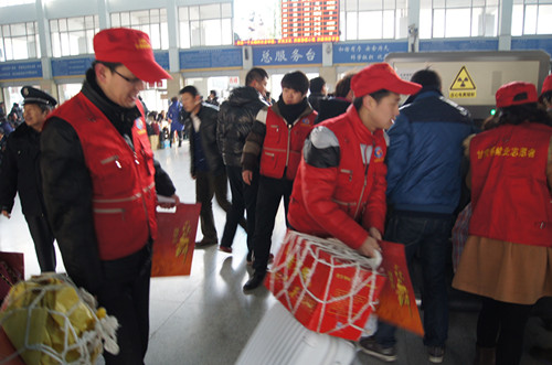 在火车站、在汽车站,200多名春运志愿者忙碌着安检引导、舒缓拥堵、解答疑难、扶助特殊旅客等工作。大家不厌其烦的回答每位乘客的询问,热情周到的帮着旅客拎包,让大家愉快地将温暖带回家,将平安带回家。元月29日下午,甘肃青年志愿者艺术团也将精彩的节目送到了社区,送到了基层,送到了群众的心坎上,大家和社区居民同欢乐,共温暖。