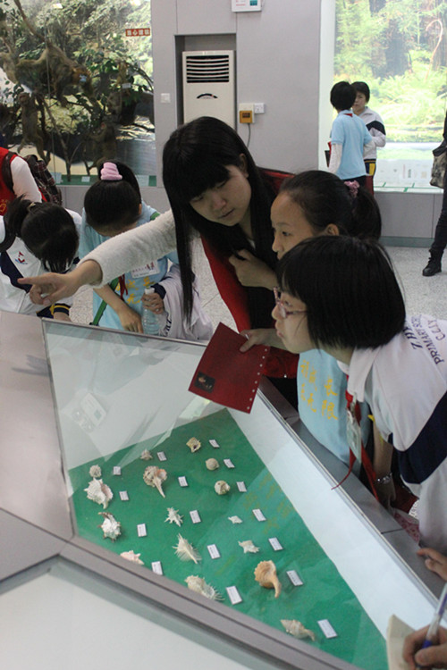 在陈其铨书道馆中,志愿者们带领他们走近书法的美妙世界,精彩绝伦的书法展品让他们目不暇接,他们或趴在橱窗上仔细研究展品,或在一幅幅书法作品下连声赞叹,或好奇地摆弄起毛笔练习书写;陈复礼摄影艺术馆给他们展示的是视觉冲击力十足的摄影世界,他们沉醉在相片里记载的各种画面故事中;生物标本展厅则为他们构建神奇的动物世界,从鸟类到哺乳动物,从海洋生物到南极动物,种类繁多、细致齐全的标本打开孩子们了解未知世界的窗户。