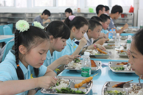 学院青年志愿者还带领这82名小学生一起在东二饭堂用膳,感受大学集体氛围,共同交流学习感受,鼓励他们展望梦想,共筑青春梦。(摄影:陈晓明)