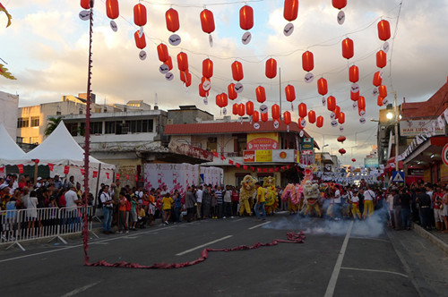 中国青年志愿者网讯 5月11日下午,毛里求斯路易港唐人街张灯结彩、热闹非凡,由毛里求斯华商总会主办的“唐人街美食文化节”在一段极具中国特色的舞龙舞狮的鞭炮声中拉开序幕。毛里求斯旅游部长杨尊绍、毛里求斯艺术与文化部长丘尼、中国驻毛里求斯使馆李立大使、路易港市长、华人华侨、毛里求斯民众、外国游客以及重庆赴毛里求斯青年志愿者出席并观看了开幕式典礼。