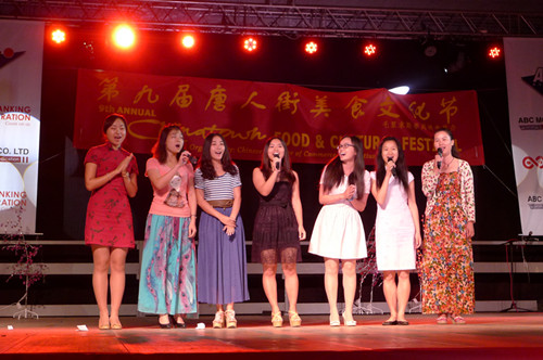 本届美食文化节上,当地民众和外国游客不仅品尝到了美味的中华料理,还欣赏了来自中国内蒙古艺术团、中国文化中心舞蹈队和武术队、当地华人社团带来的丰富的文艺节目表演。应邀参加美食节的重庆赴毛里求斯青年志愿者们也在现场为观众带来了精彩的中国歌曲联唱,新疆民歌《阿拉木汗》唱出了浓郁的维吾尔族风情,歌曲《鲁冰花》则献出了对天下母亲的感恩与真挚的爱。