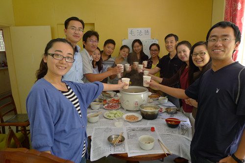 座谈结束后,应重庆赴毛里求斯志愿服务队的邀请,张进珠参赞还与志愿者们一同品尝了自制的重庆火锅。十多个人围着那热气腾腾其乐融融的火锅,在欢声笑语中品尝着麻辣鲜香的重庆味道。