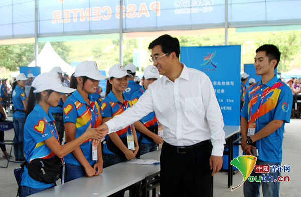 中国青年网北京9月4日电(记者 张建伟 通讯员 陈燕)9月3日,在南宁出席第十届中国—东盟博览会、中国—东盟商务与投资峰会的团中央书记处第一书记秦宜智一行来到南宁国际会展中心,亲切看望了服务“两会”的大学生志愿者。