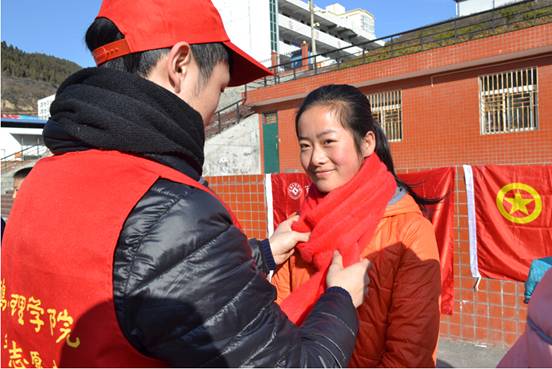 昨日,在宝鸡凤县青年志愿者联合会和宝鸡文理学院团委近一个月精心组织下,“暖心红围脖”行动一早启程,几百条亲手编织的红围脖为双石铺中学留守儿童送来冬天的温暖。