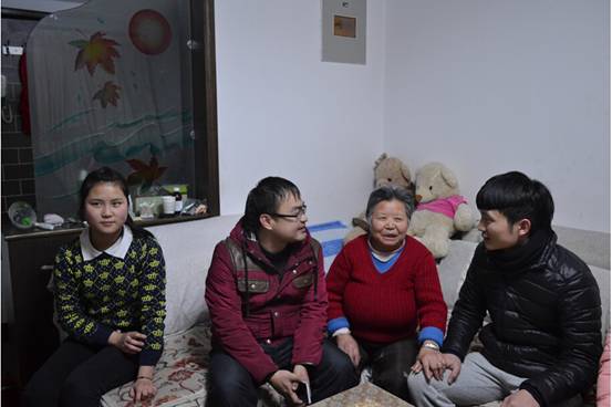 (孩子奶奶拉住志愿者的手表示感谢 王晓波 摄)