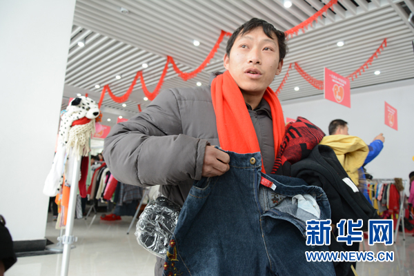 来自四川的他在场内转来转去,为自己的母亲选了一条裤子