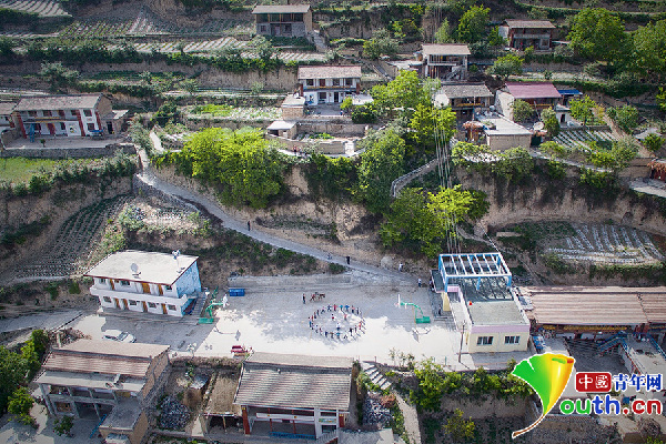 从远处看,红顶黄墙的真庄小学格外醒目。虽然只有一间教室,但那却是黄三英和孩子们快乐的源泉。中国青年网记者 张炎良 摄