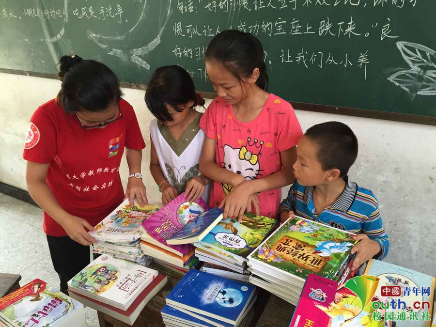 “知识成就梦想,阅读春风化雨”。7月20日至30日,厦门集美大学教师教育学院“雏青筑梦”实践队在江西省遂川县于田中心小学开展的“营养‘悦’读,文化相传” 暑期社会实践活动圆满结束。在为期10天的爱心支教活动中,“雏青筑梦”实践队与北京桂馨慈善基金会通力合作,共同开展了桂馨书屋‘悦’读周系列活动,帮助孩子养成良好的阅读习惯,丰富阅读视野,快乐阅读,浸润心灵,让改变从“悦”读开始。(通讯员:陈丽明摄影:钟亦胜)