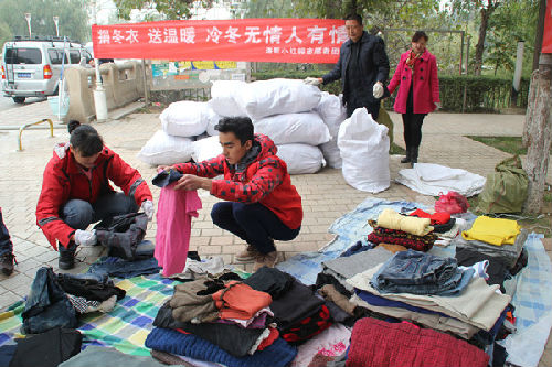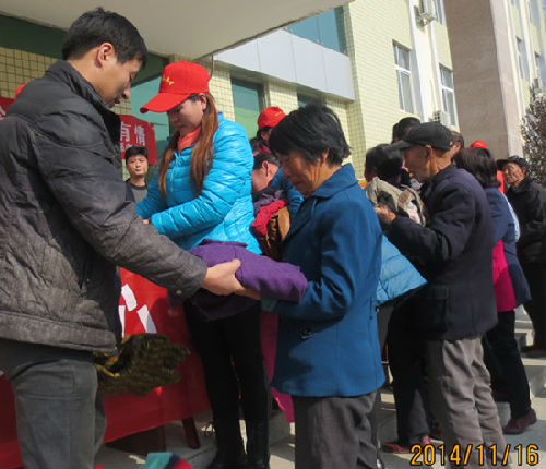 中国青年网洛阳11月17日电(通讯员赵金龙 杨鹏温晓东)为了让山区人民过一个温暖的冬天,洛阳市文明办志愿者联合会和洛阳市小红帽志愿者团队面向洛阳市民举行“捐冬衣,献爱心,为贫困山区送温暖”大型公益募捐活动,为了促进活动的圆满成功河南科技大学动科青协志愿者积极参与到此次活动中来,在河南科技大学校内、外传播关爱精神,为山区人民送去温暖。此次活动从11月1号开始到11月16号把御寒衣物送达洛阳市洛宁县上戈镇和故县镇结束,历时16天,共募集衣物60000余件,派出志愿者300余人。