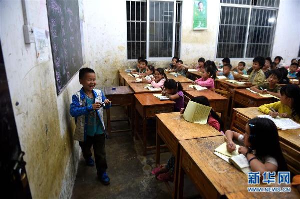 弄勇小学五年级学生康志国在教室里拍摄同学们自习(5月26日摄)。今年5月份,来自北京“爱心同盟”的爱心人士为广西大化瑶族自治县板升乡弄勇小学捐赠了一批相机,帮助学校成立“摄影梦想社”,孩子们开始学习使用相机记录校园和暑假生活的点点滴滴。几个月来,这些贫困山区的孩子们,用自己独特的视角,体验做为一名“小摄影师”的快乐。新华社记者黄孝邦摄