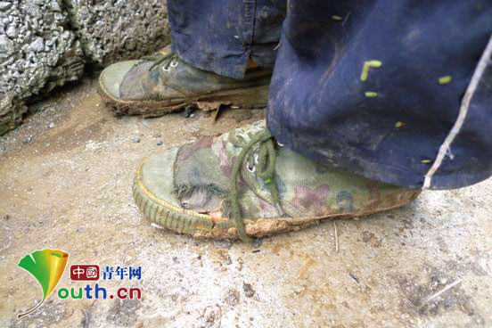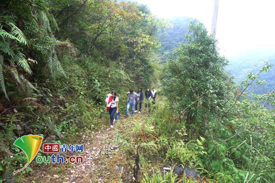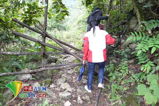 湿湿滑滑的石子山路,放慢了志愿者的脚步
